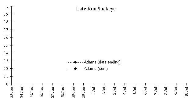 Daily and Cumulative counts of sockeye stocks passing the Mission Echo Sounding station during the summer of 1996. Information taken from the Pacific Salmon Commission.